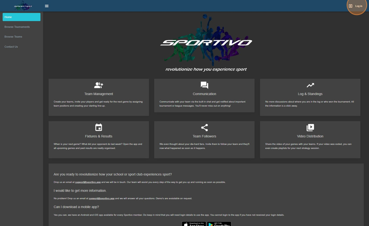 1. Navigate to https://sportivo.app/admin/#/public/home