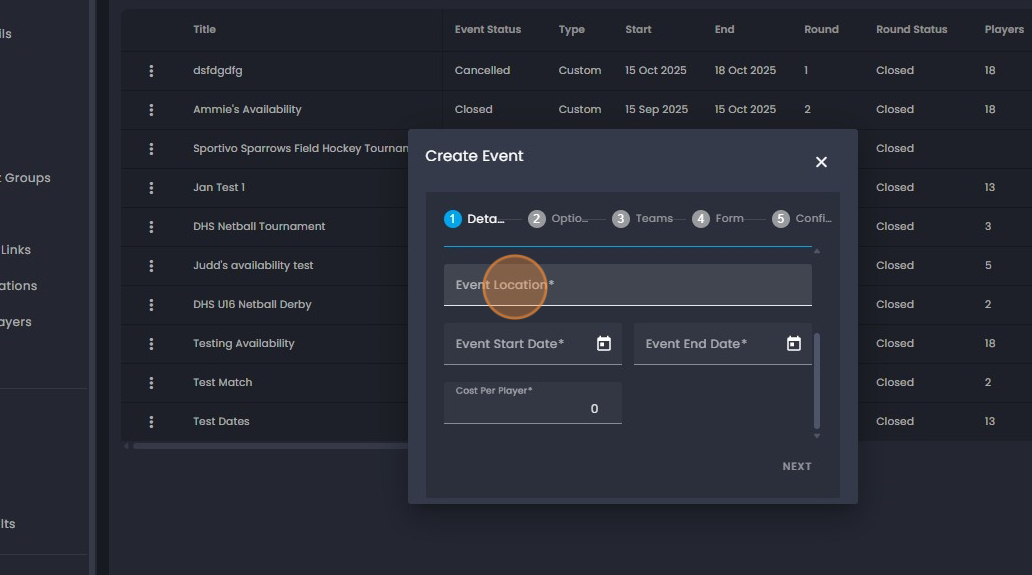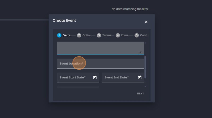 9. Click on "Event Location" and add the location for the upcoming event.