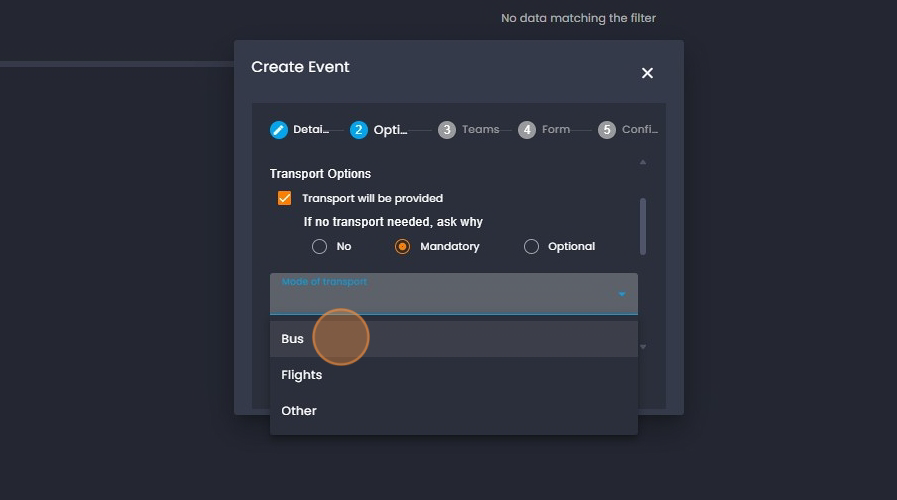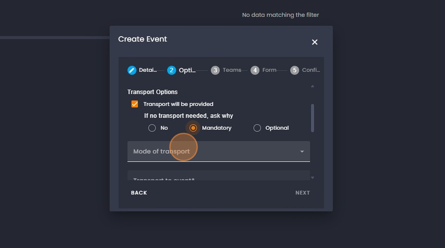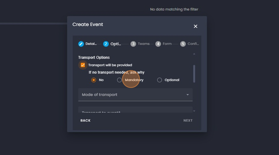 22. Click on "Transport from event" and add the information regarding the