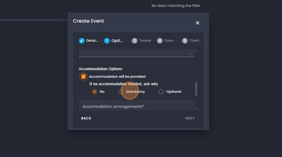 23. Click on "Accommodation will be provided" if required.