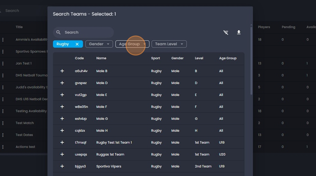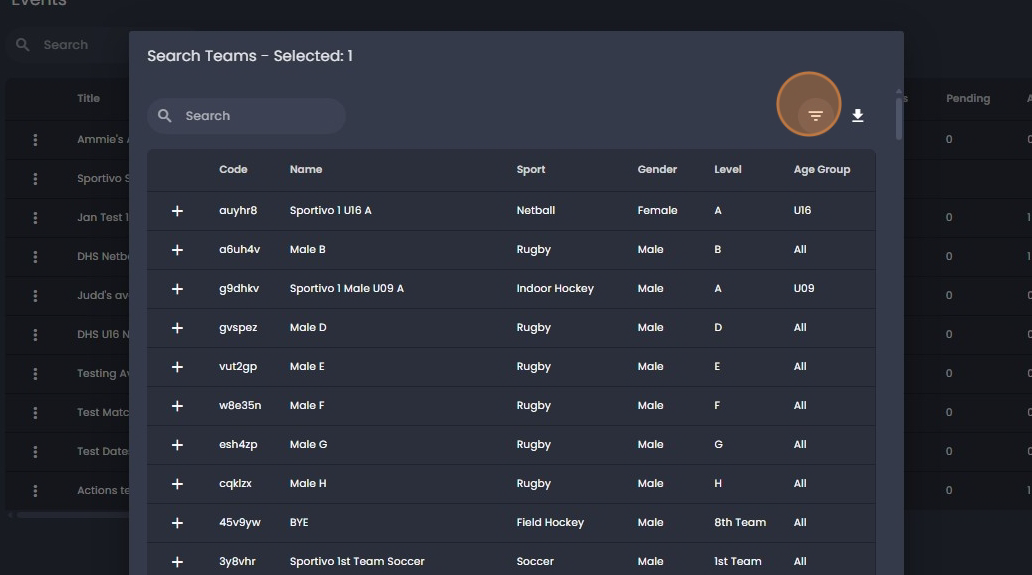 31. Option 2 - when adding your team/s. You may click on the "filter icon".
