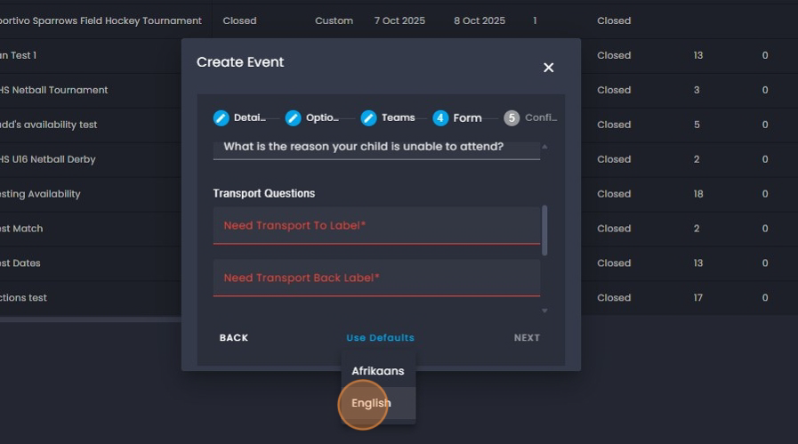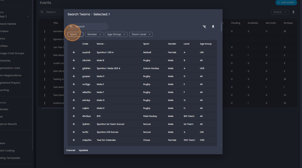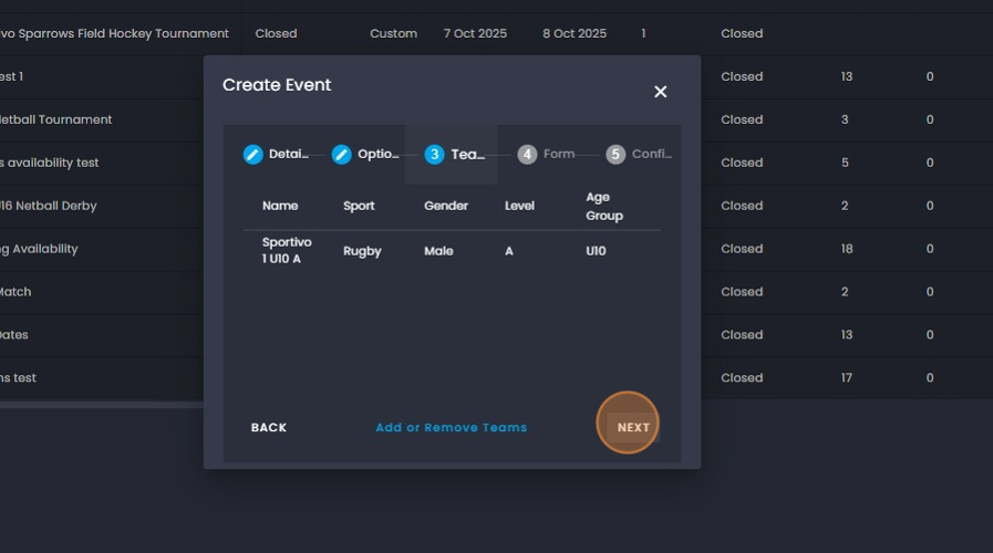 30. Option 1 - Click on the team/s you would like to add to the event.
