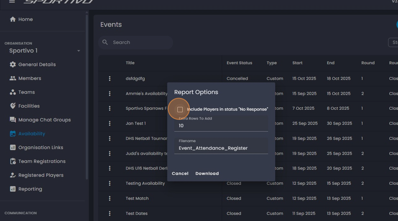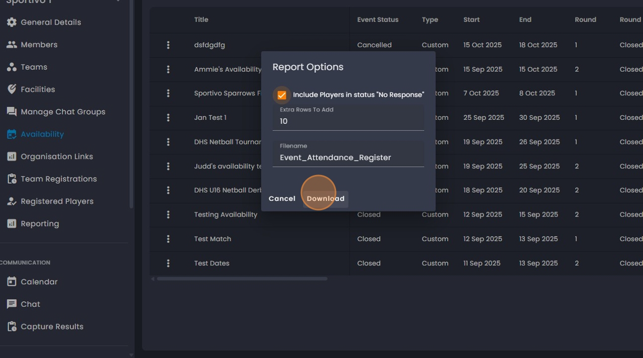 Export or download your availability list at the touch of a button, perfect for sharing with coaching staff or organizing transport lists.